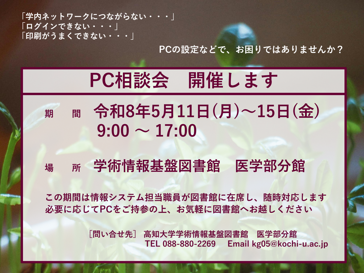 【医学部分館】5/11(月)~5/15(金)PC相談会を開催します